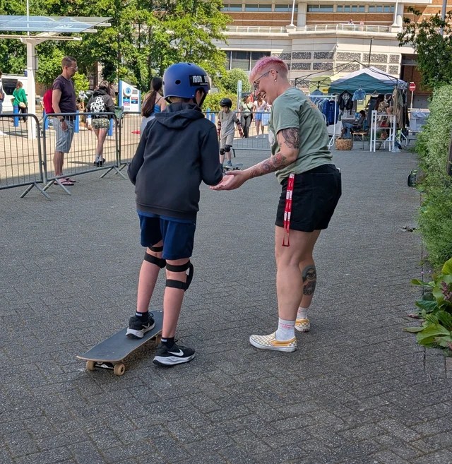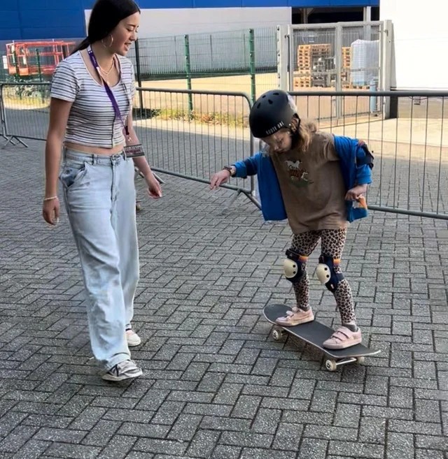 In 2024, we invited Cath from Shanko’s Skate School to run free taster lessons and Becky, one of our community members assisted too. The 30 min taster lessons ran over the weekend with all kit provide and were fully booked the whole time!