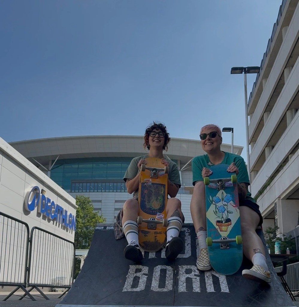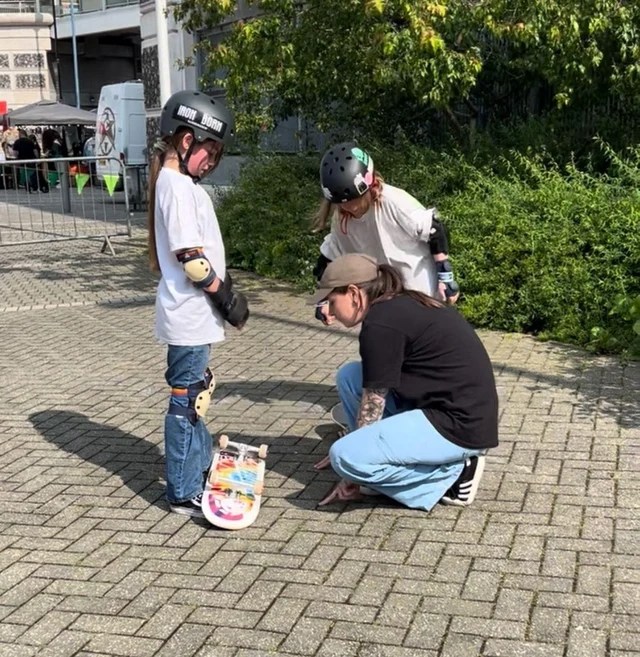 In 2025 we continued with 30 min free taster lessons running over the weekend with all kit provided and 2 SBGB qualified coaches. Ida, founder of Get Up Skate School and Emily. We also invited Becky, one of our community members, back to assist too. The lessons were fully booked all weekend and we got over 50 people on boards!